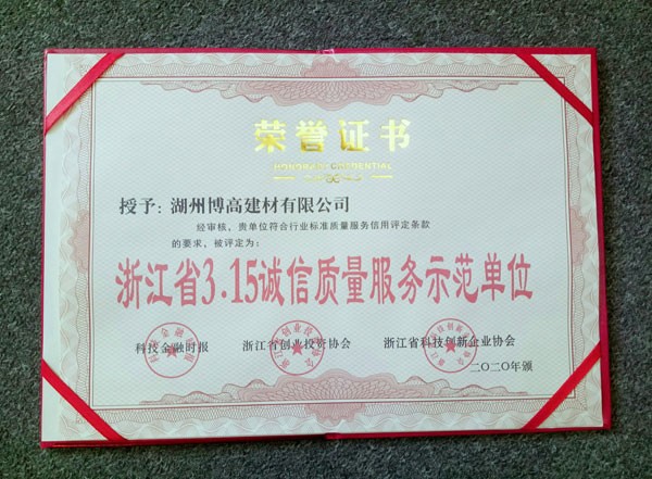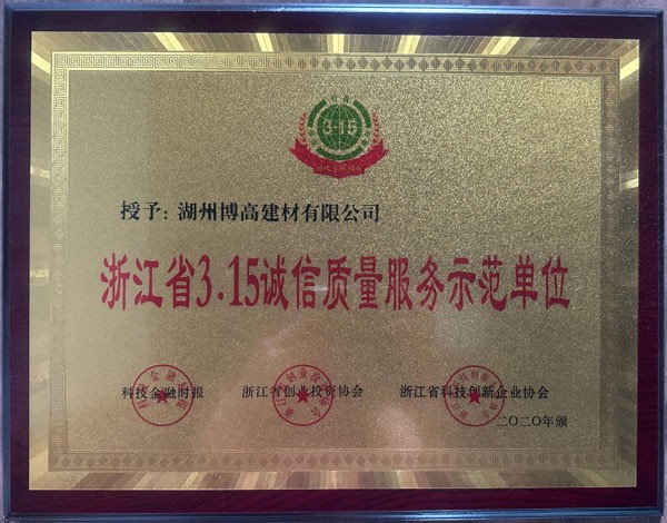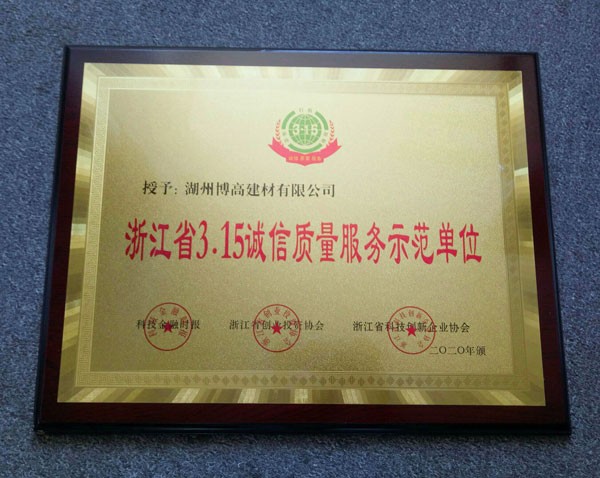 浙江省3.15誠信質(zhì)量服務示范單位