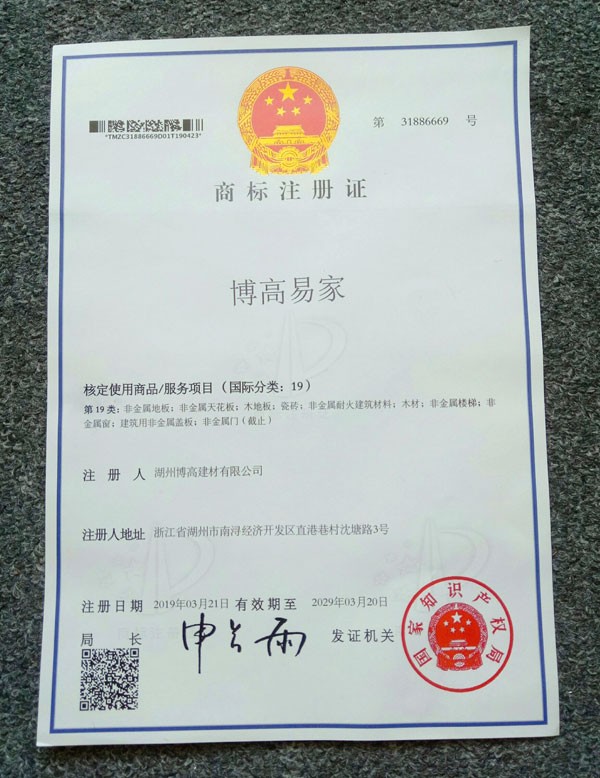 博高易家商標注冊證01