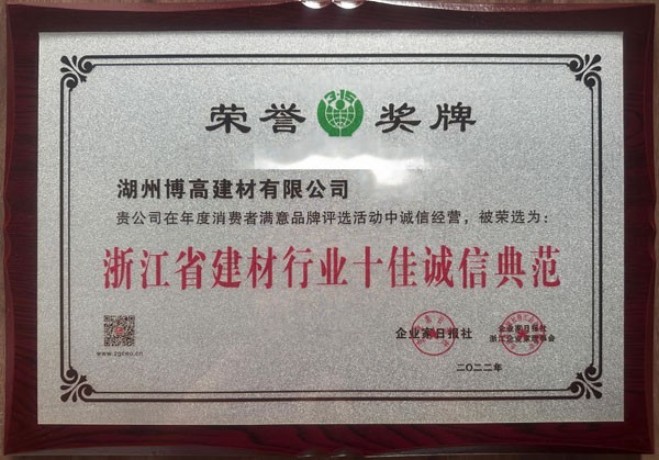 浙江省建材行業(yè)十佳誠信典范